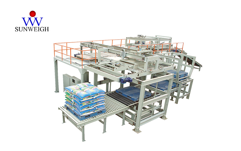 5、堆垛分層升降裝置,通過位置控制實現(xiàn)最大八層包裝袋的堆垛,空托盤自動供給,動作連續(xù)、準(zhǔn)確可靠。