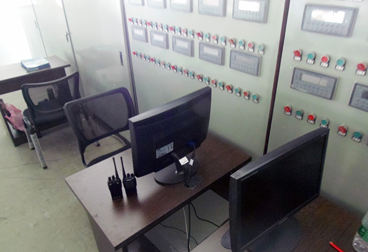 B、整體設(shè)備帶故障檢測系統(tǒng),后段設(shè)備故障,前段設(shè)備自動停止。并顯示故障點(diǎn)位置和原因,用報警燈顯示系統(tǒng)運(yùn)行狀態(tài)(運(yùn)行、故障、停止)。